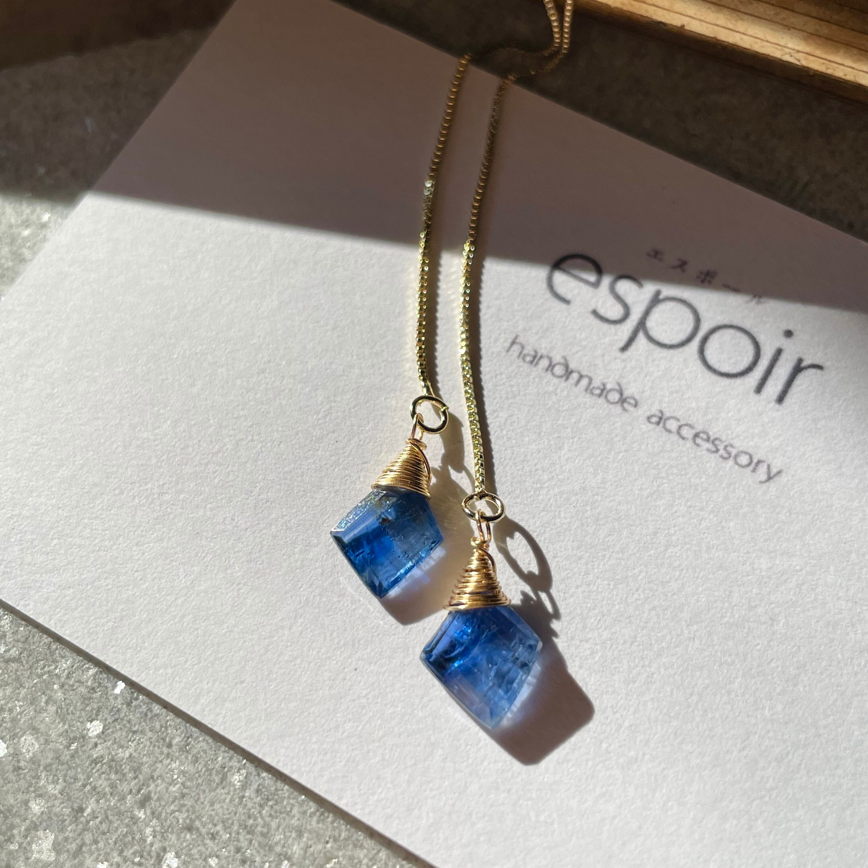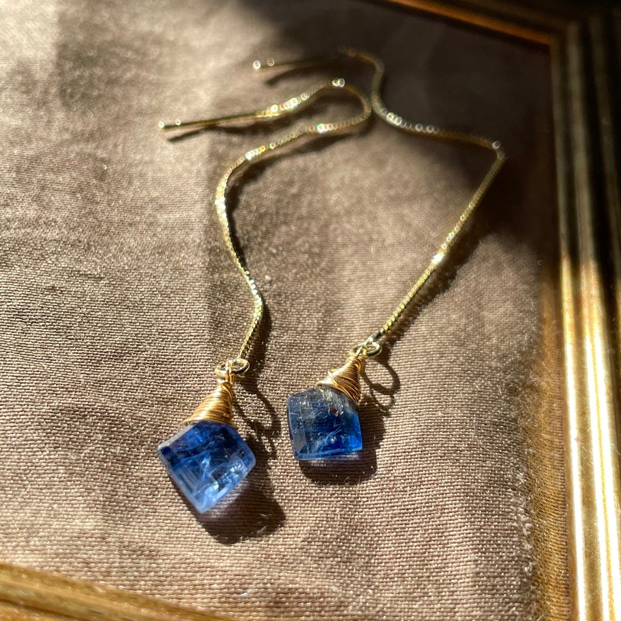 天然カイヤナイトをシンプルに引き立てた、アメリカンタイプのピアスです。