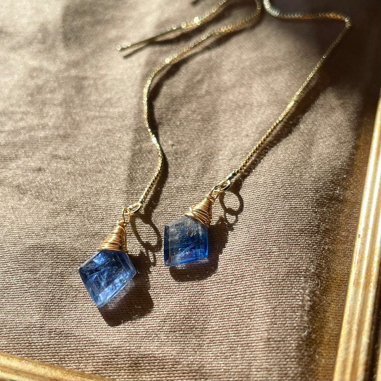 光に透けるたび、ブルーの奥行きが表情を変え、耳元で静かに輝きます。
