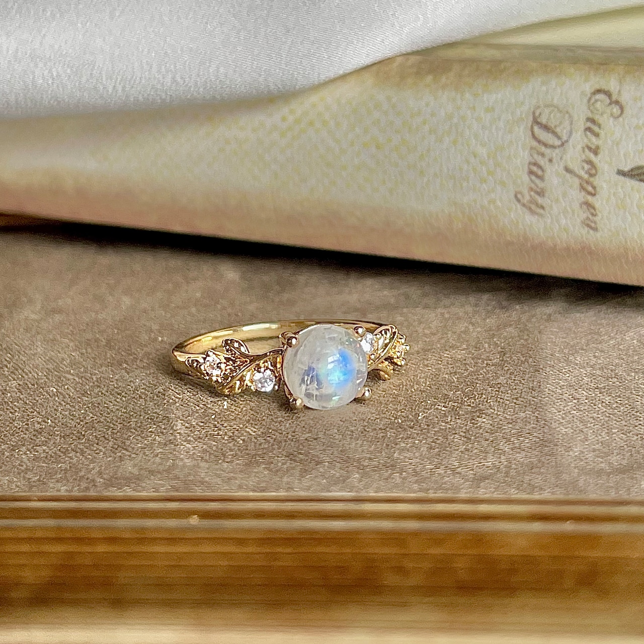 月の光を閉じ込めたように青白く輝くブルームーンストーン。