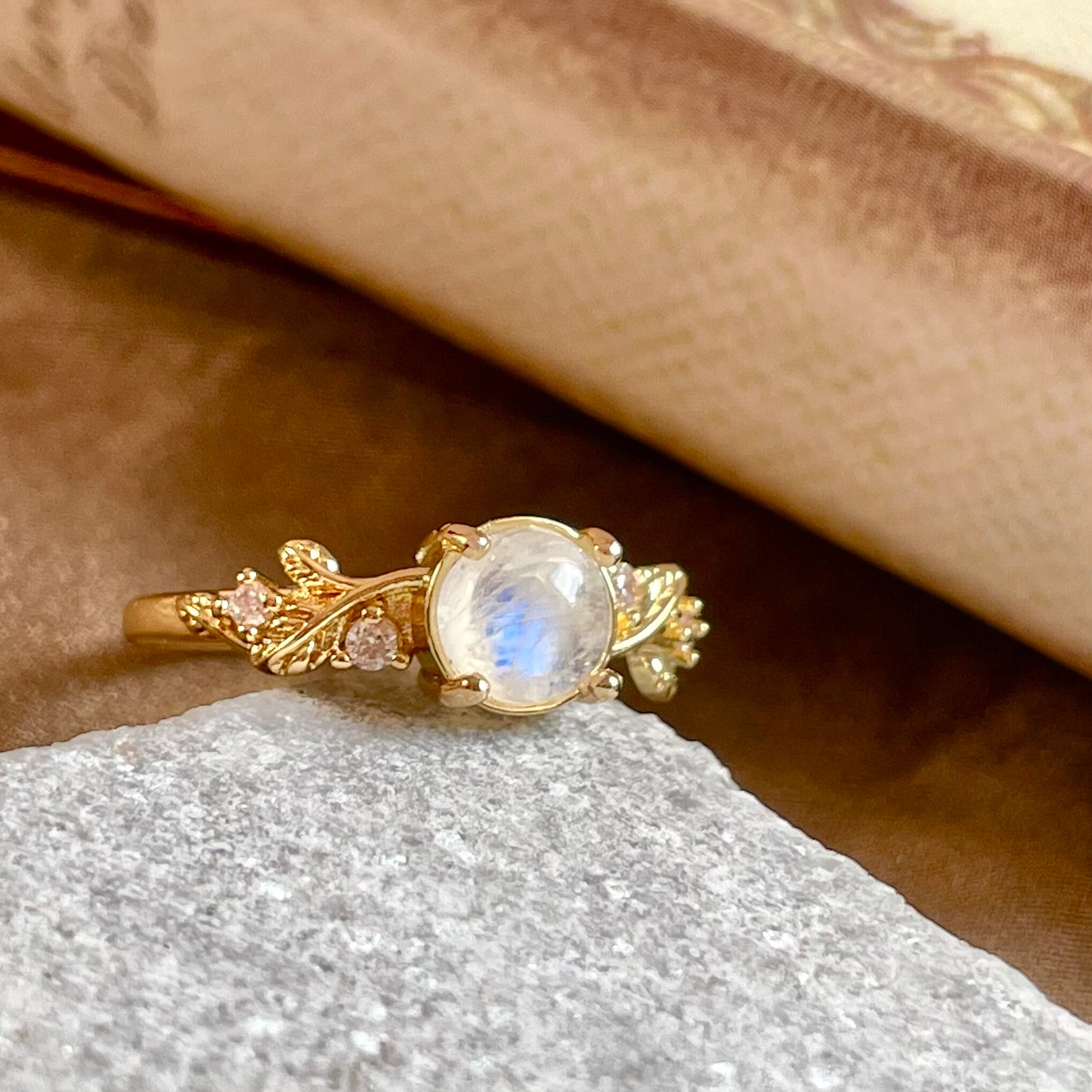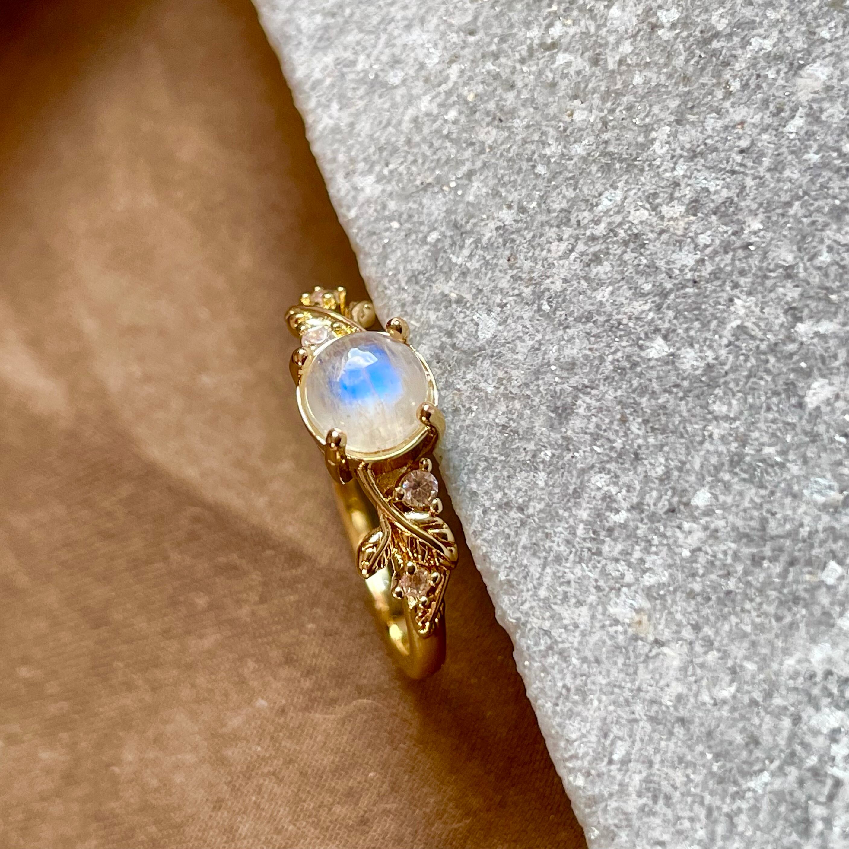 月の光を閉じ込めたように青白く輝くブルームーンストーンリング。