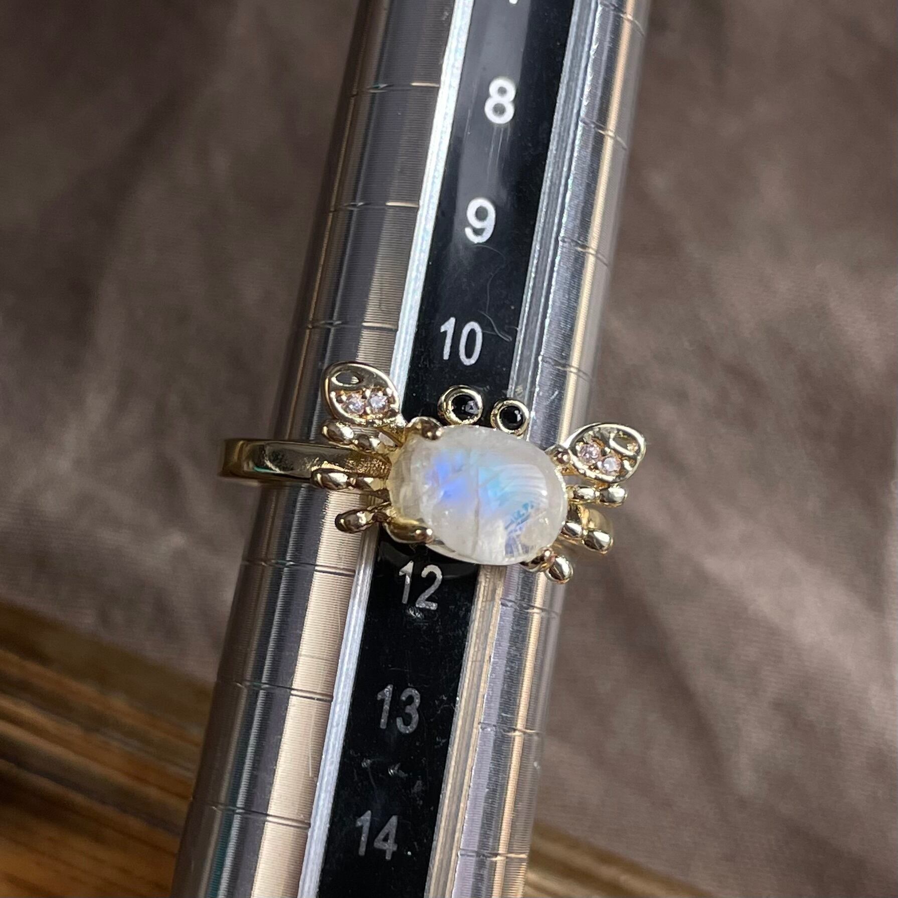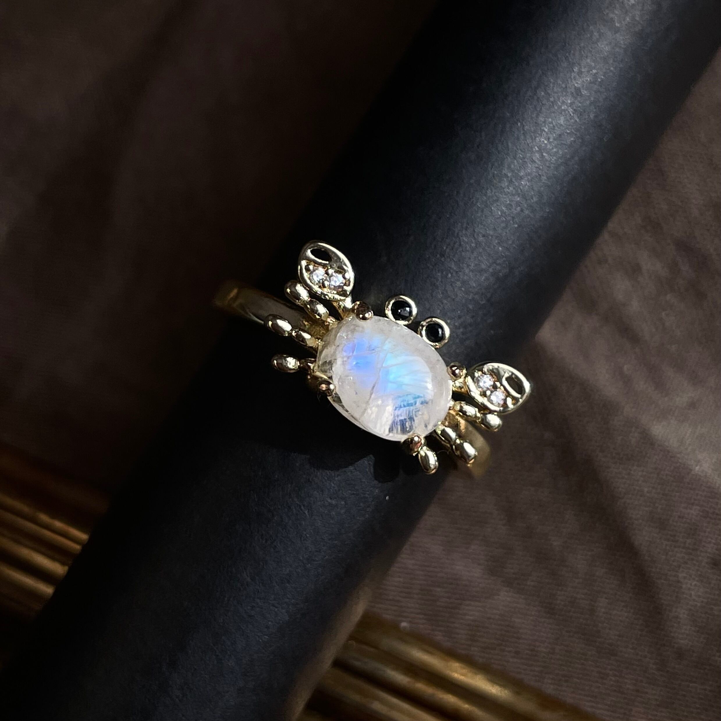 遊び心がありながら指にのせると不思議と落ち着くのは、ブルームーンストーンの静かな輝きのおかげ。