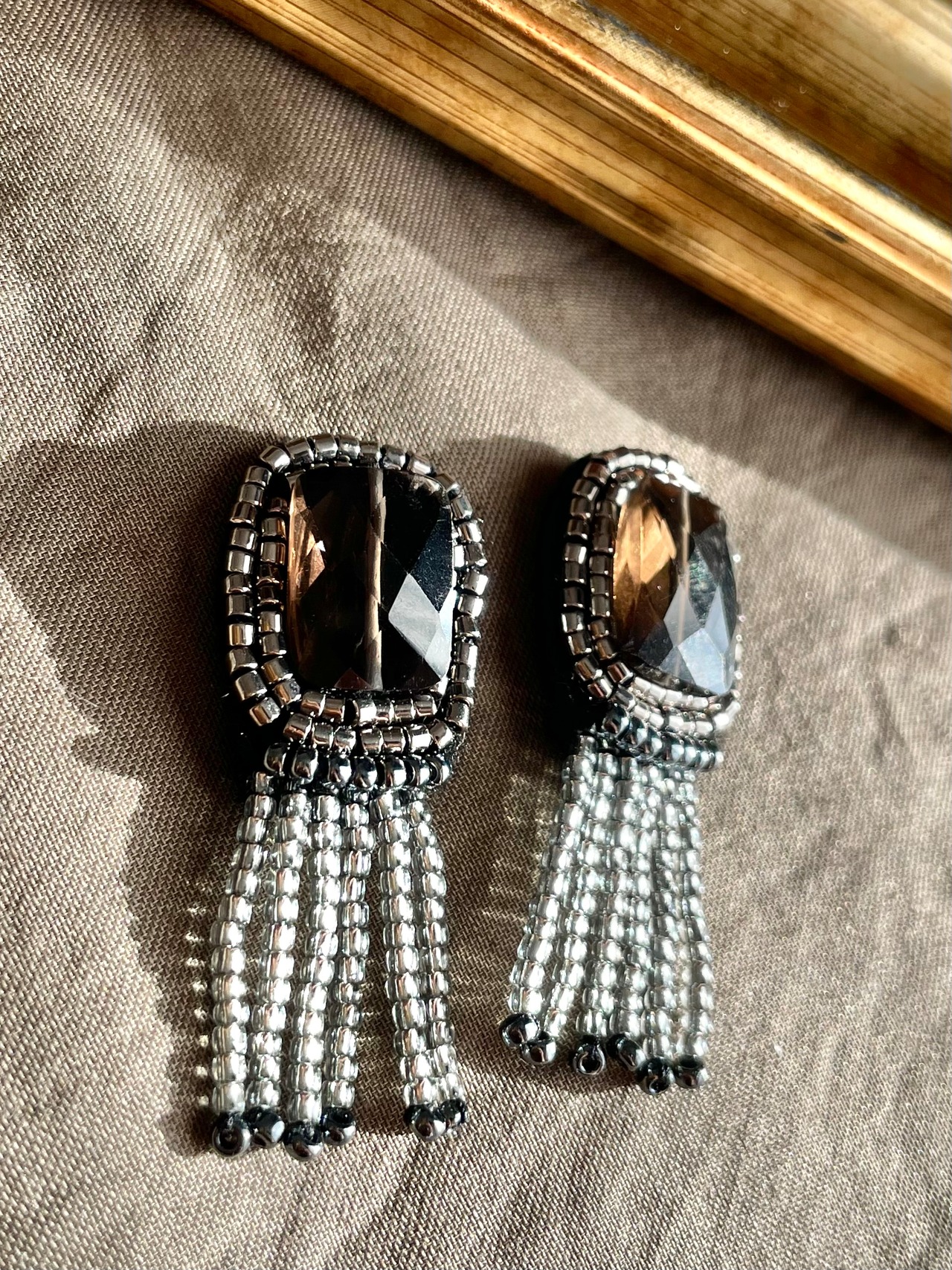 こちらスモーキークオーツの刺繍ピアス/イヤリングになります。