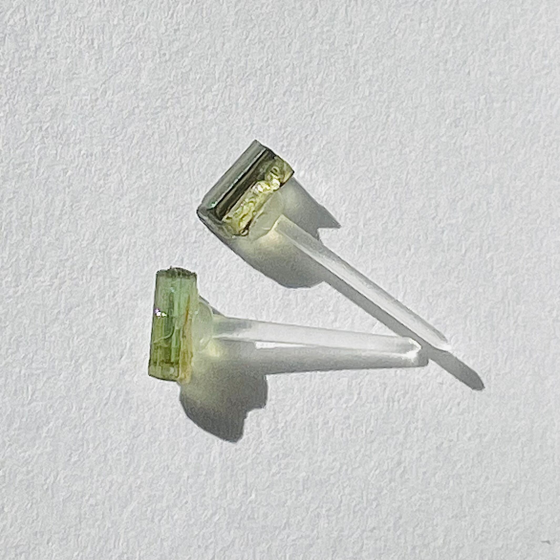 こちらトルマリン原石のミニピアスになります。