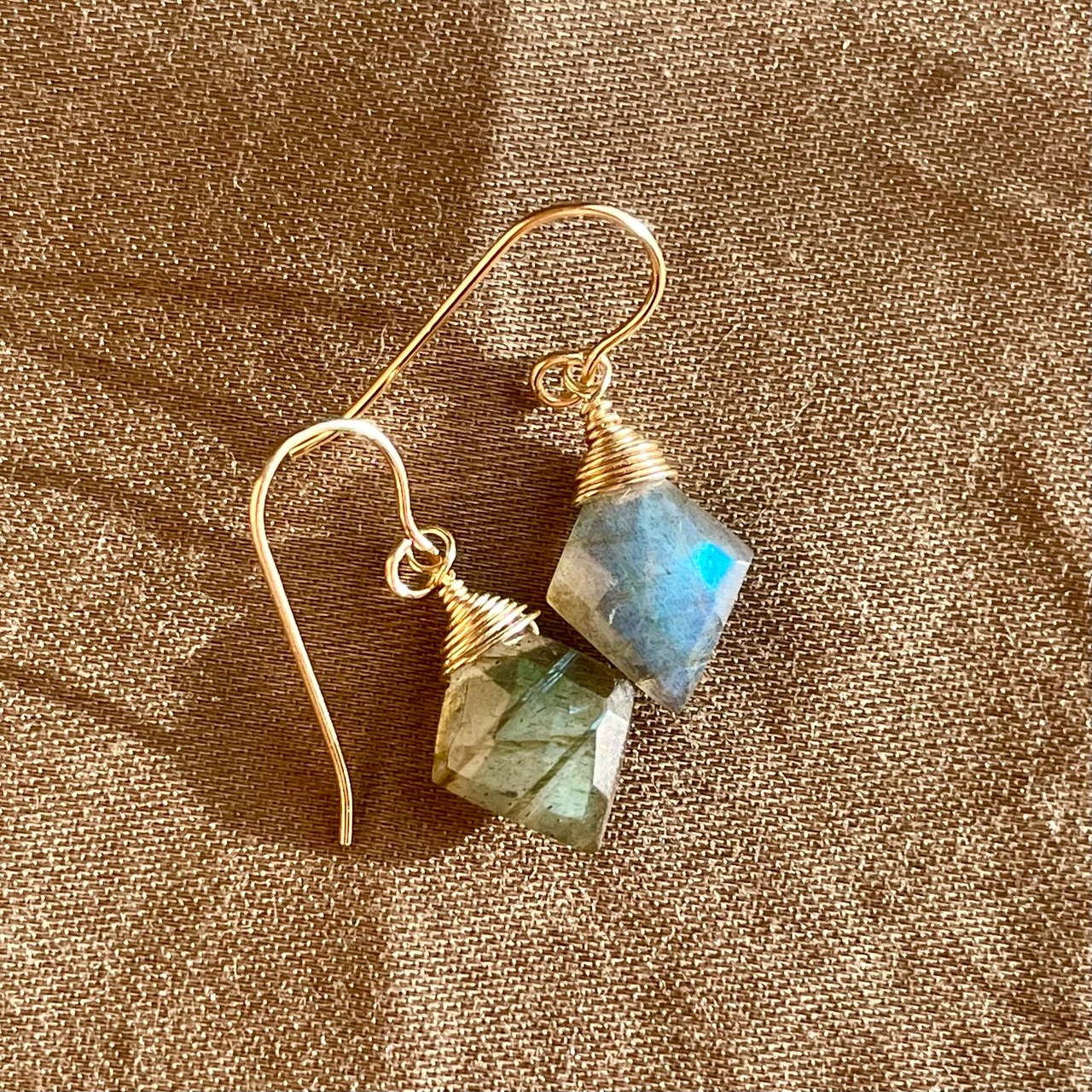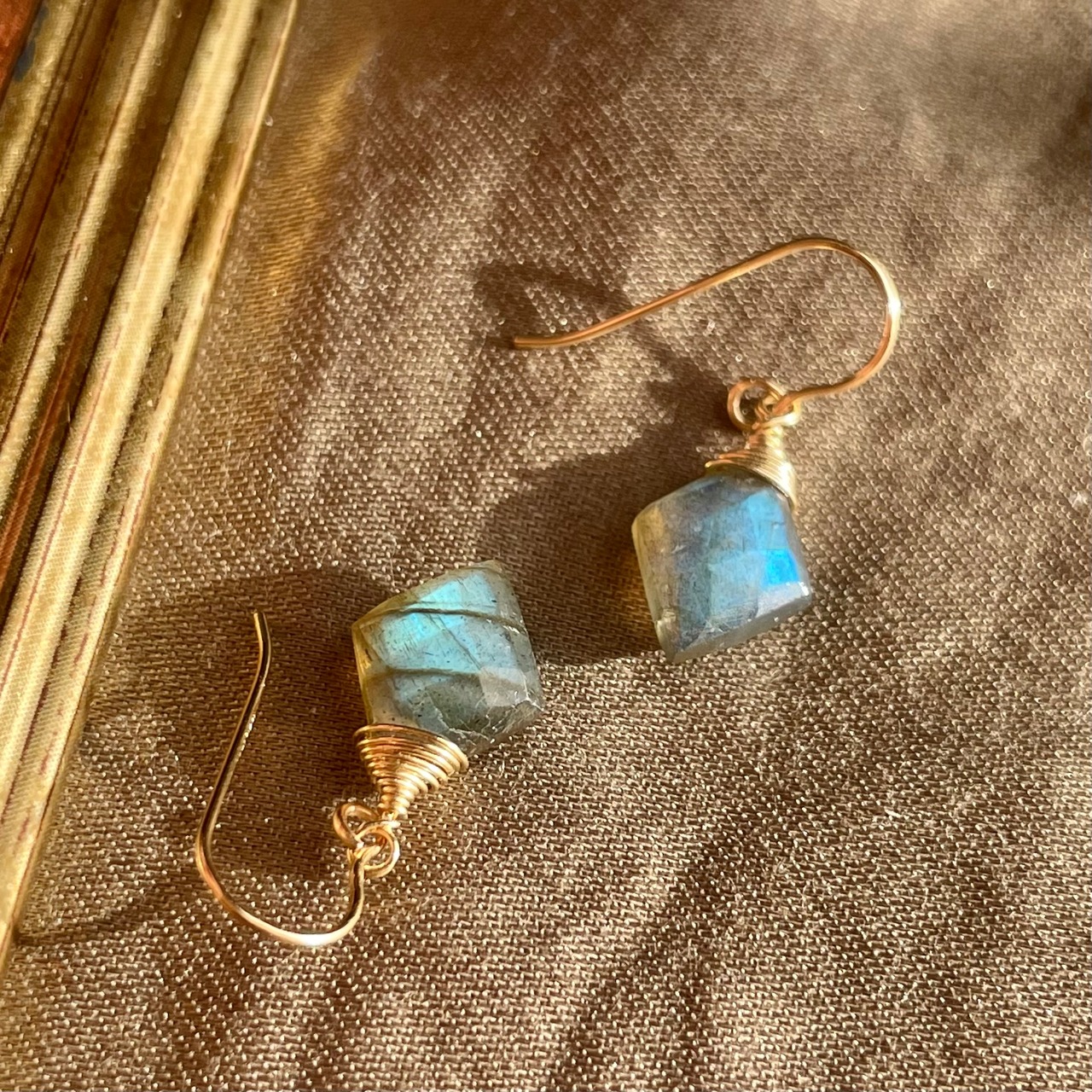 こちらはラブラドライトのピアスになります。