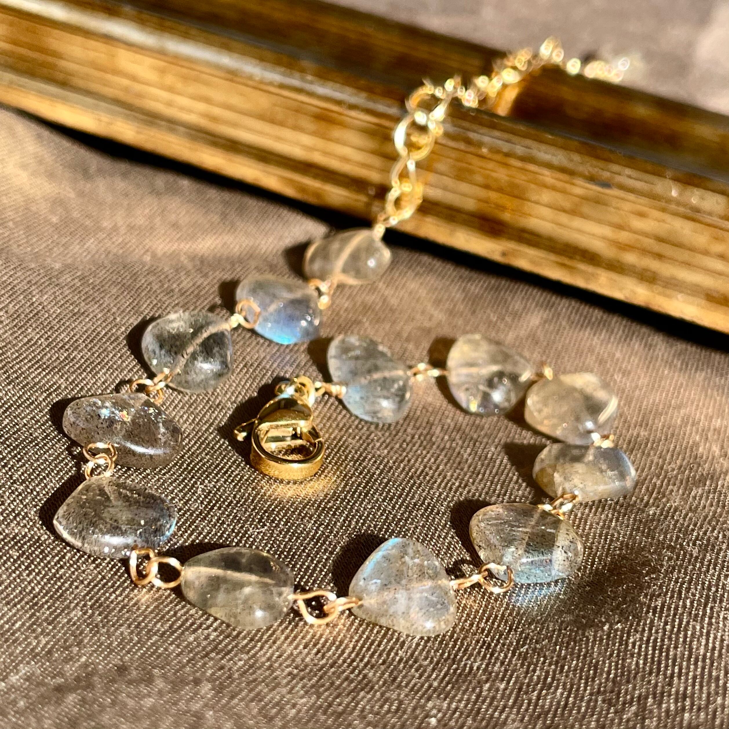 透明感がありサイドにキラリと輝くレッセンスが美しく、ブレスレットとしてつけていると色々な表情が見えるためふと目に入る度に思わず見つめてしまうブレスレットです(*^^*)