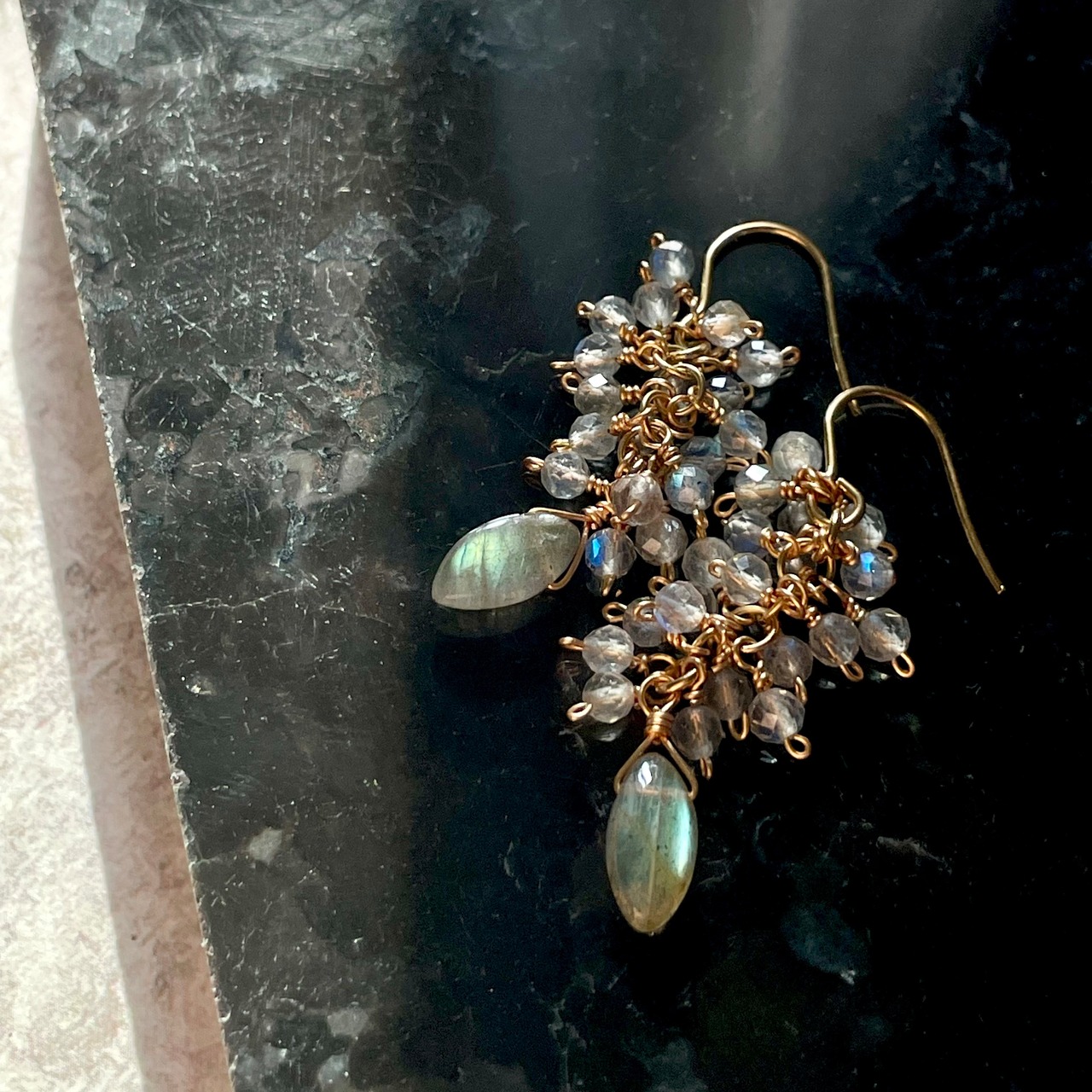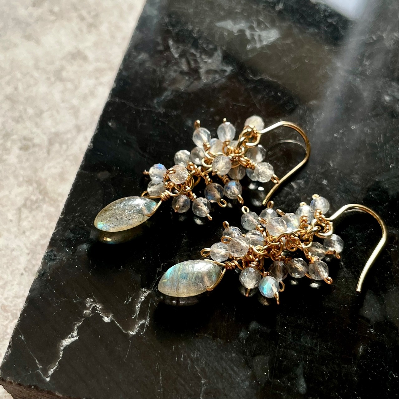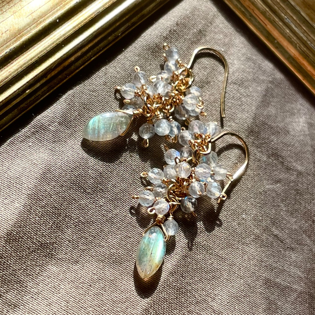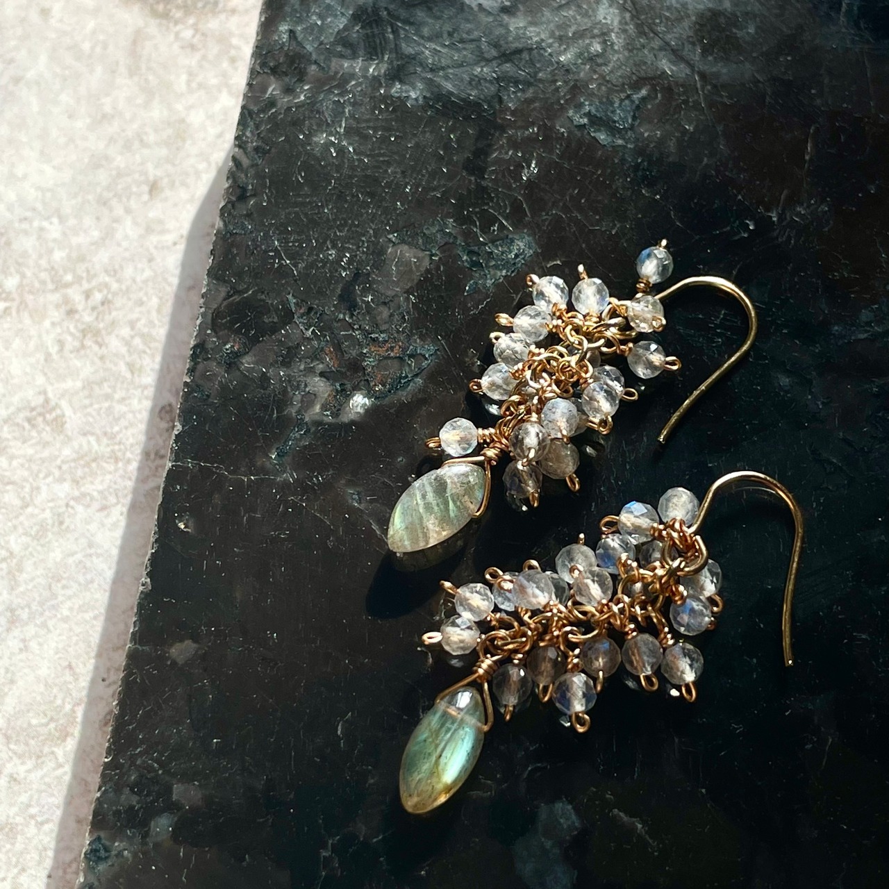マーキス型のぷるんとしたビーズと合わせ、動く度しゃらしゃらと揺れるのがとても美しいです(*^^*)