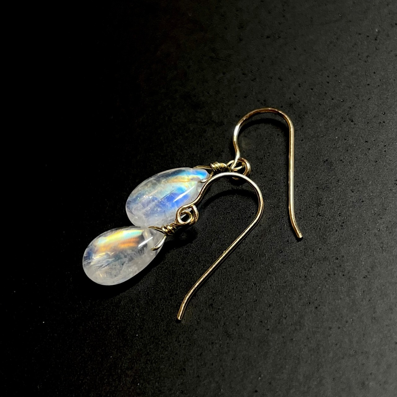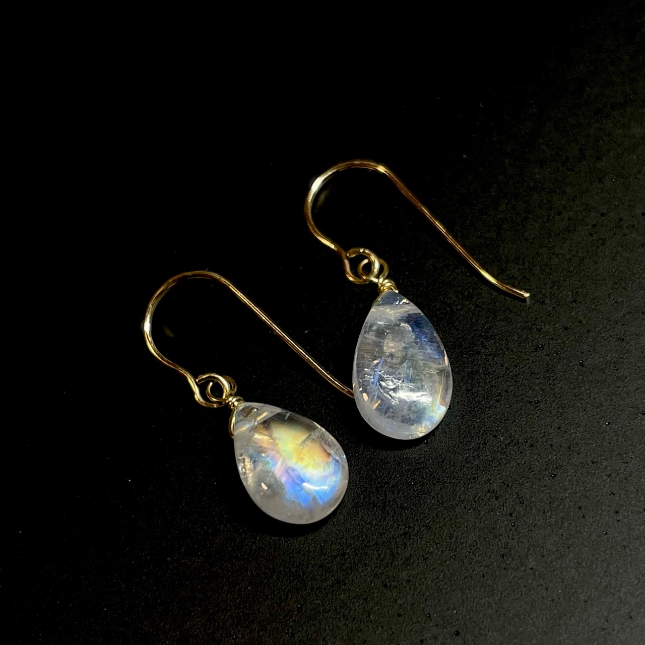 こちらはレインボームーンストーンのピアスになります。